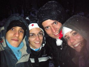 Non ho finito di raccontare! Sapete perchè è stato così straordinario? Perchè il nuovo anno ci ha PREMIATI facendoci svegliare con i FIOCCHI DI NEVE e cotinuando a nevicare per tutto il giorno, permettendo ai RARI e ai PINGUINI di trascorrere una giornata bellissima e farci dimenticare il diluvio della sera prima e poter festeggiare a correre, tirarci le palle di neve e costruire un bel (!) pupazzo di neve !!! Quando il Raro mi ha svegliato non ci voleva credere e solo quando si è assicurato che fosse NEVE mi ha sussurrato nell’orecchio che stava NEVICANDO!!! GRAZIE RAGAZZI! |