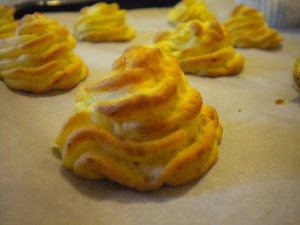 Ora mettere l’impasto ottenuto in un sac-à-poche e a bocchetta liscia o stellata formate sulla carta forno dei mucchietti distanziati fra loro perchè poi in cottura tenderanno a gonfiarsi un po’