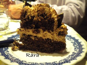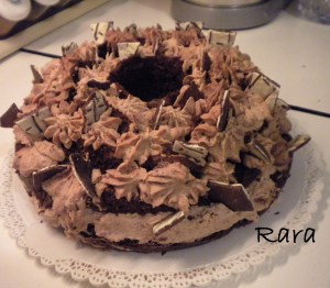 decorazioni: crema al cioccolato come la farcitura, pdz sbriciolata sopra e al lato granella di mandorle