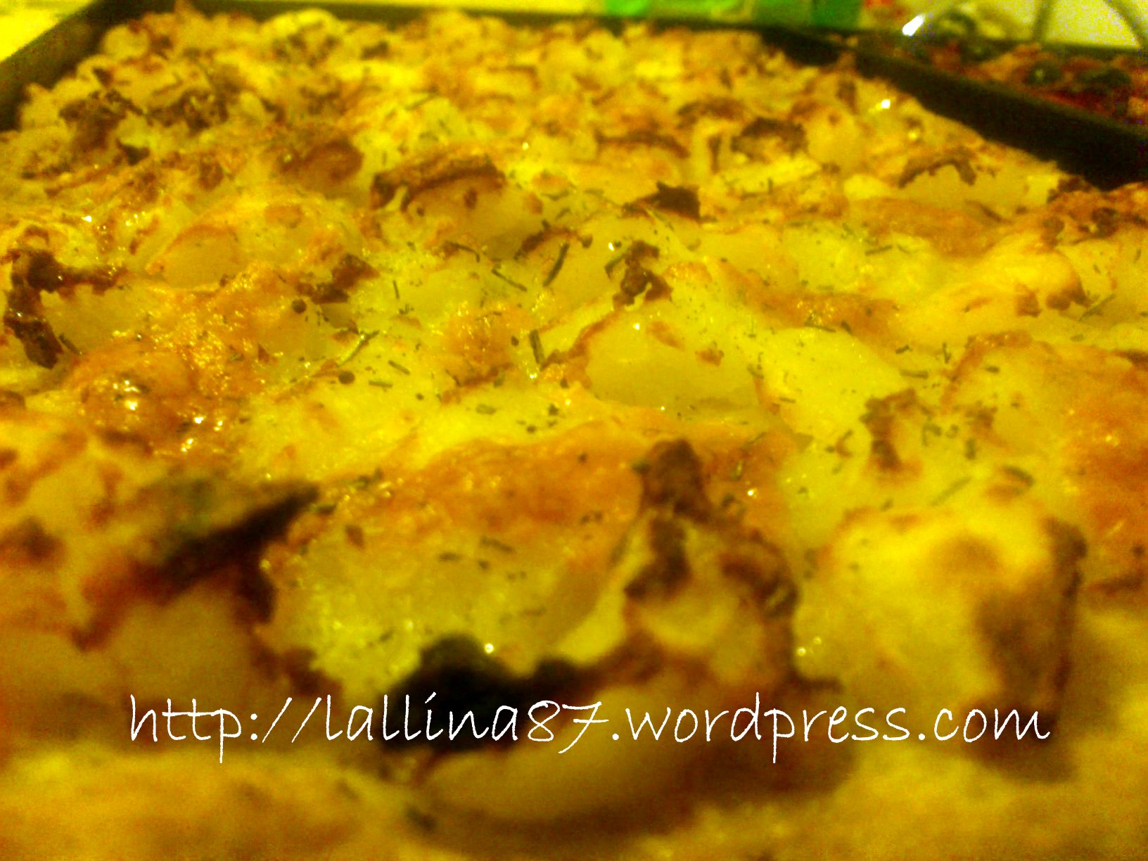 tutto insieme con patate lessate e sbriciolate a mano, pepe, rosmarino sale olio e mozzarella