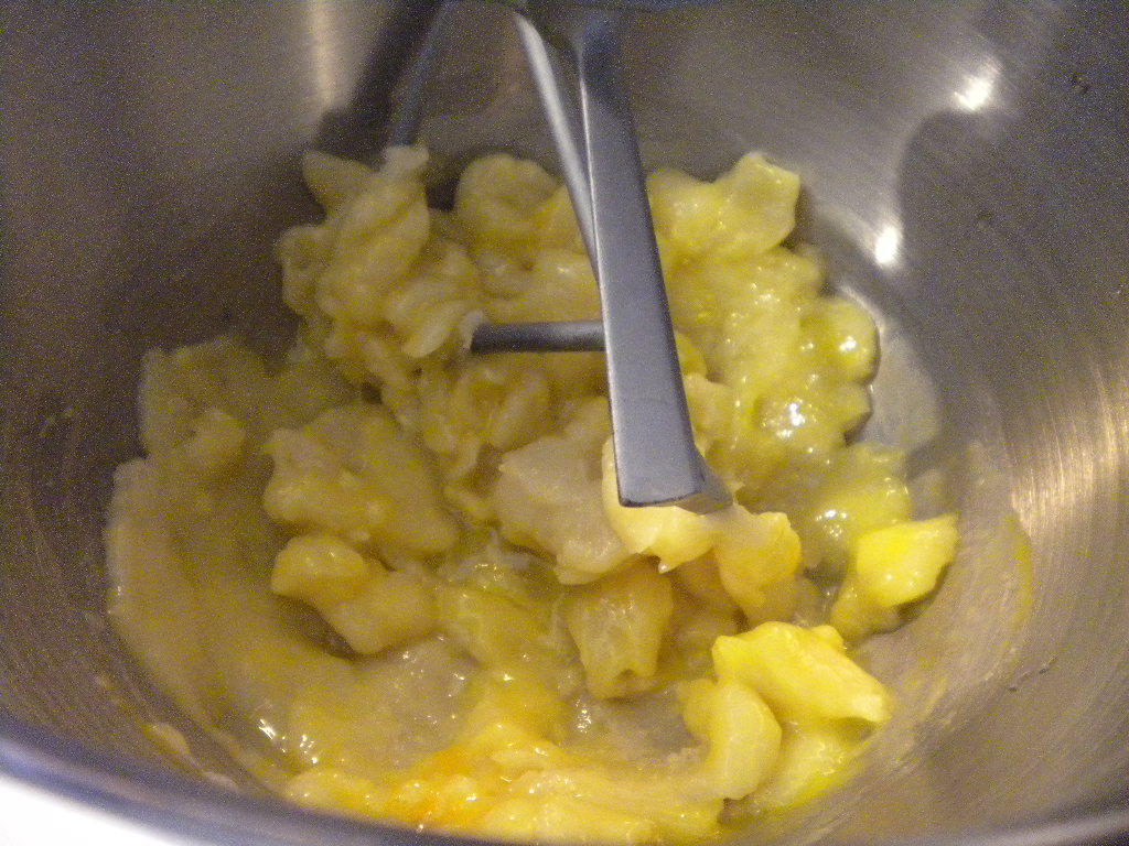 Togliere dal fuoco e far freddare. Dopo di ciò nella planetaria con la frusta K/con le frustine a spirale aggiungere un uovo per volta accertandosi che il precedente sia stato assorbidto completamente.