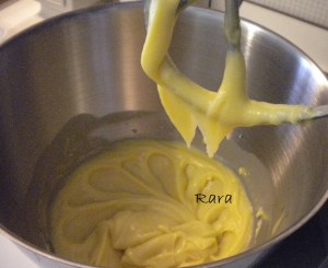 Se l’impasto fosse troppo denso aggiugnere un altro tuorlo: deve formare una sorta di nastro.