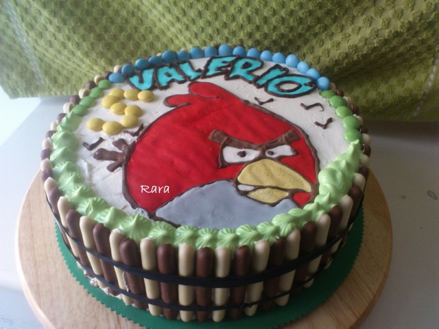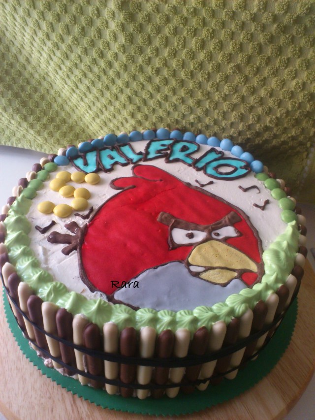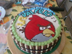 Eccomi qui! E ecco anche la mia ultima fatica e creatura: la torta di Angry Birds per Valerio, che compie proprio oggi 5 anni! Com’è cresciuto negli ultimi 5 mesi, figuriamoci i genitori, nonni e zii che l’hanno visto nascere! Per questo bambino vivacissimo e gioiosissimo quindi ho preparato questa torta, con il tema di Angry Birds da lui scelto! Beh sì, ha già le idee molto chiare 🙂