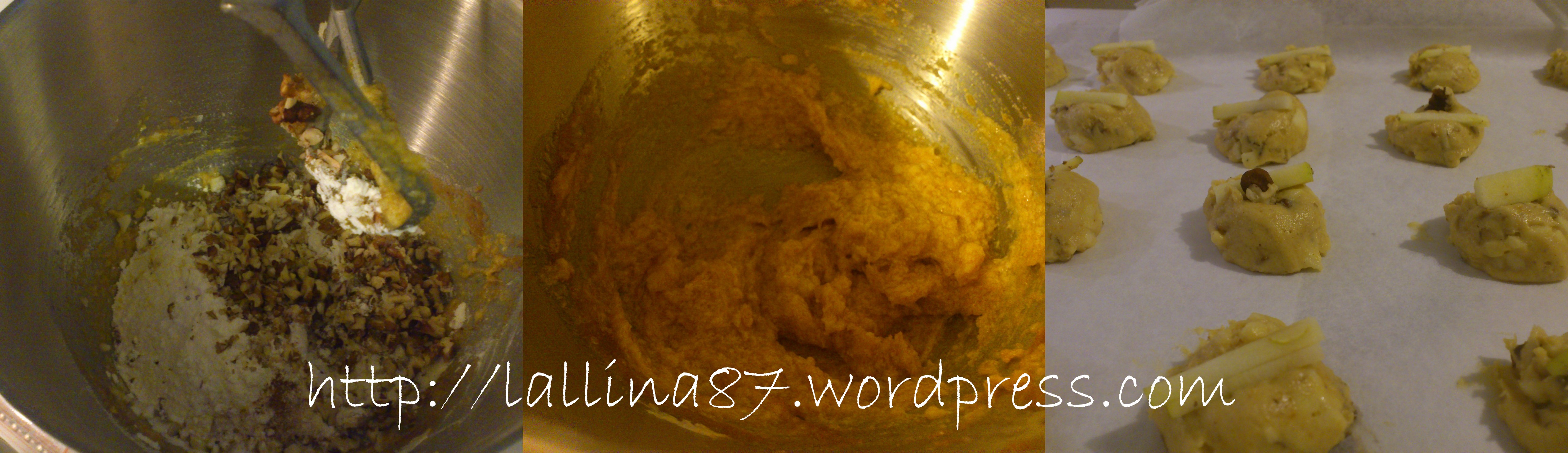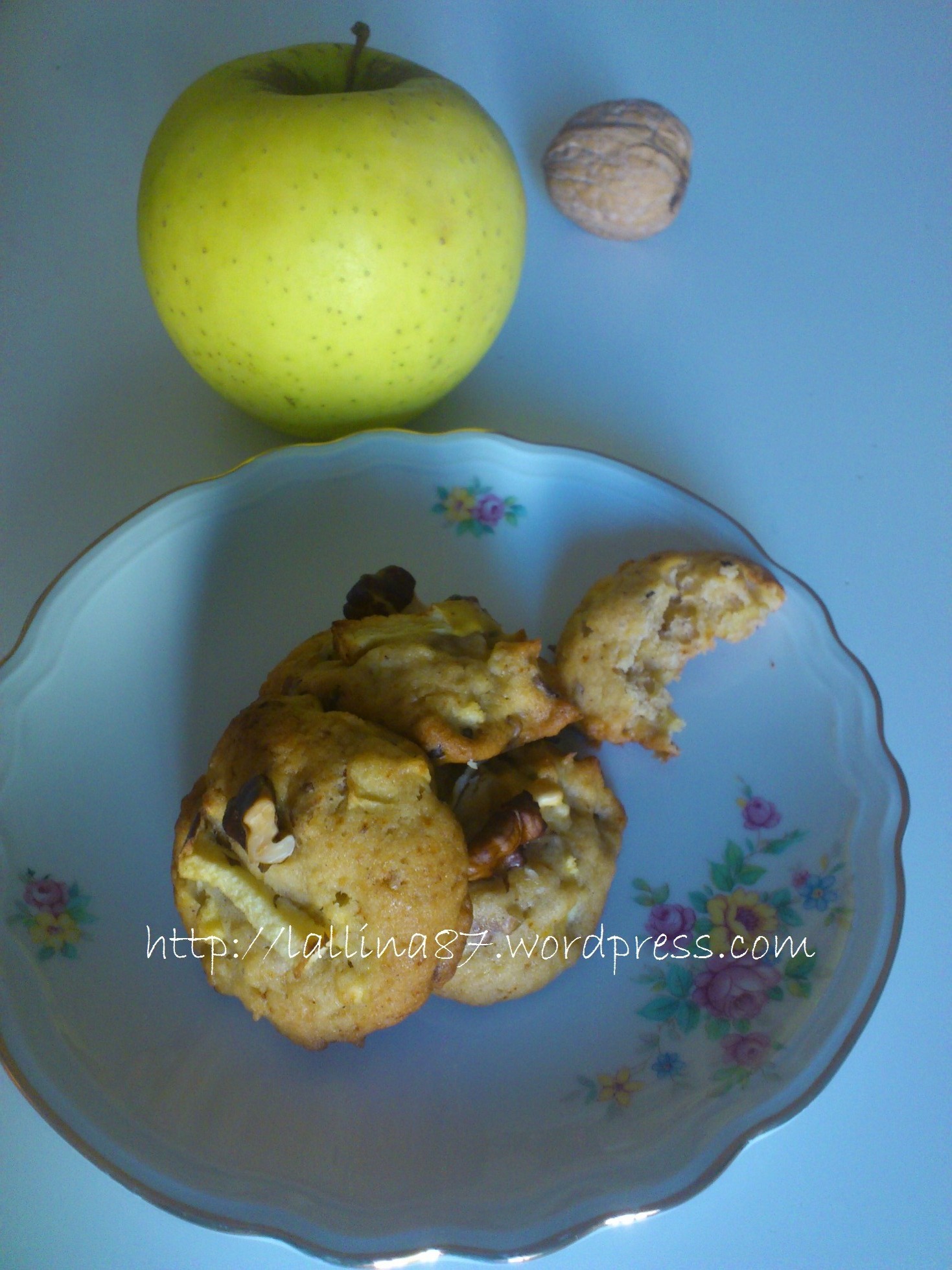 Questi sono biscottini morbidi, sembrano tortine di mele per il sapore, ma dei classici cookies per la forma! Interno morbido con note croccanti date dalle noci, davvero sfiziosi e….autunnali!