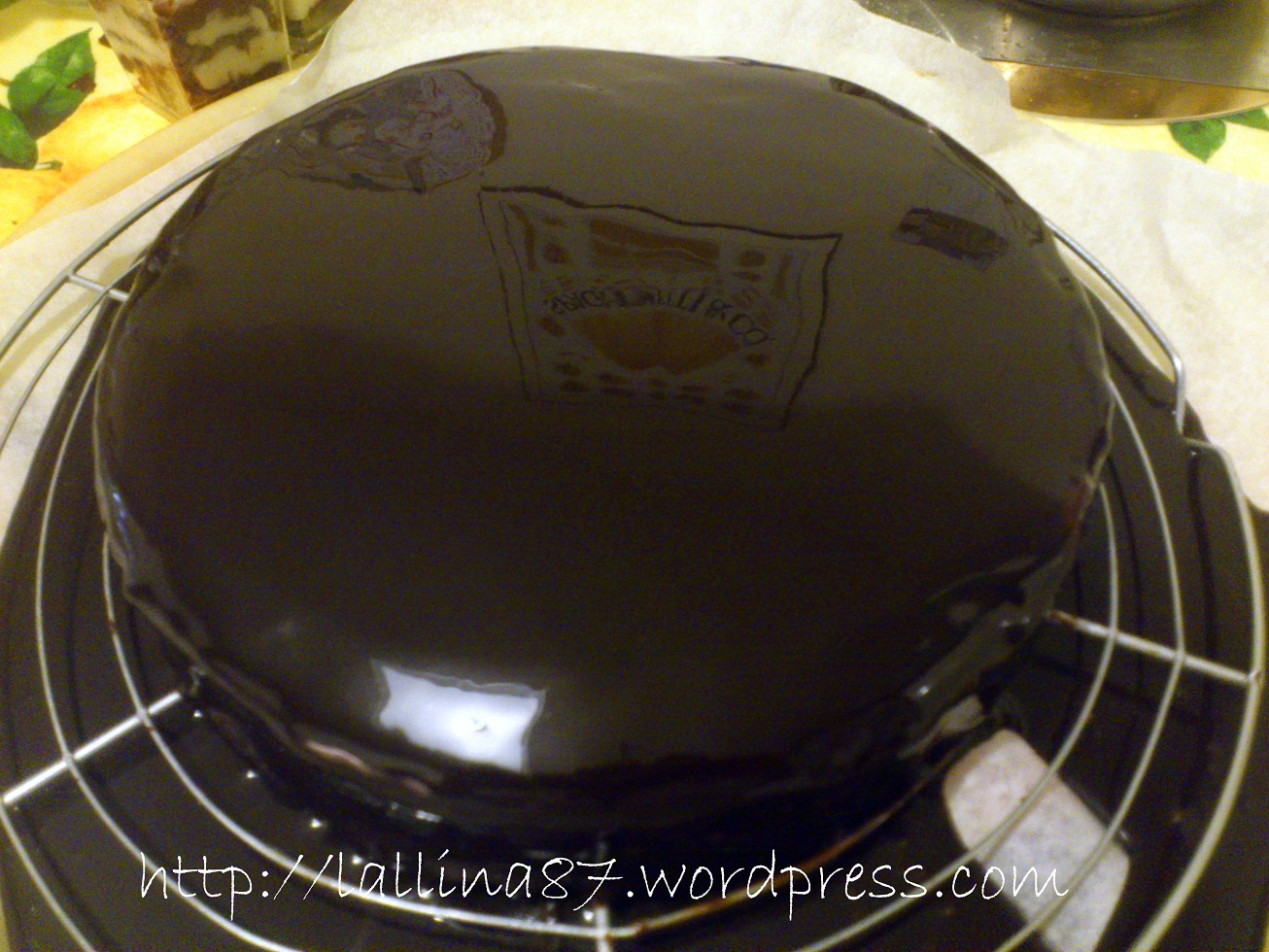 Per rivestire il dolce BISOGNA ASPETTARE che si raffreddi e che arrivi a ca 40° ( leggermente tiepida) altrimenti risulterà trasparente e non coprente; solo in quel momento infatti SI VERSA sulla torta che va poggiata su una griglia posta a sua volta su un vassoio più grande in modo che raccolga la glassa che cola!!! NON USARE SPATOLE di nessun tipo.