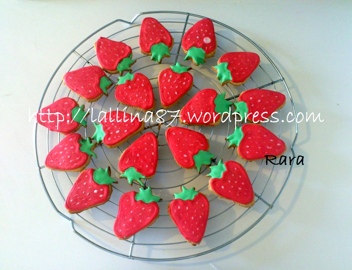 Ho messo poi in bicchieri di plastica un po ‘di glassa, ho aggiunto il colorante in polvere fino a renderlo omogeneo e acceso. Ho preparato un cartoccetto di carta forno, tagliato sulla punta e ho bordato il biscotto per avere un contenimento.