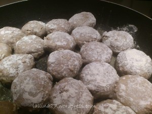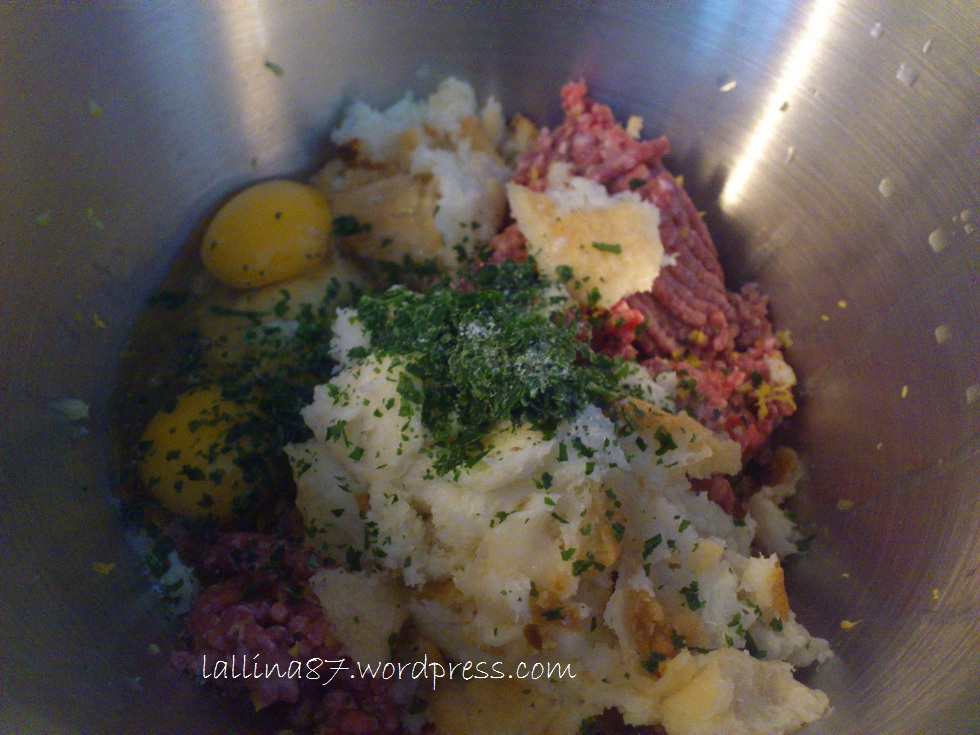 Ho iniziato ammollando il pane nel latte, nel frattempo ho unito alla carne tutti gli ingredienti e infine il pane strizzato. Ho formato le palline e le ho lasciate riposare in frigo (me ne sono venute 25).