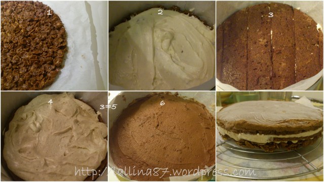 Ora passiamo al procedimento, che è un po’ lungo, ma non difficile. Si consiglia in molti post- giustamente- di dividere il lavoro in più giorni, per me è stato ancora più lungo perchè sono partita “dagli Achei” con lo sgusciare le nocciole per il pralinato; ma se si ha pralinato pronto, si può fare in anticipo e conservarlo in frigo; pan di spagna al cioccolato idem;