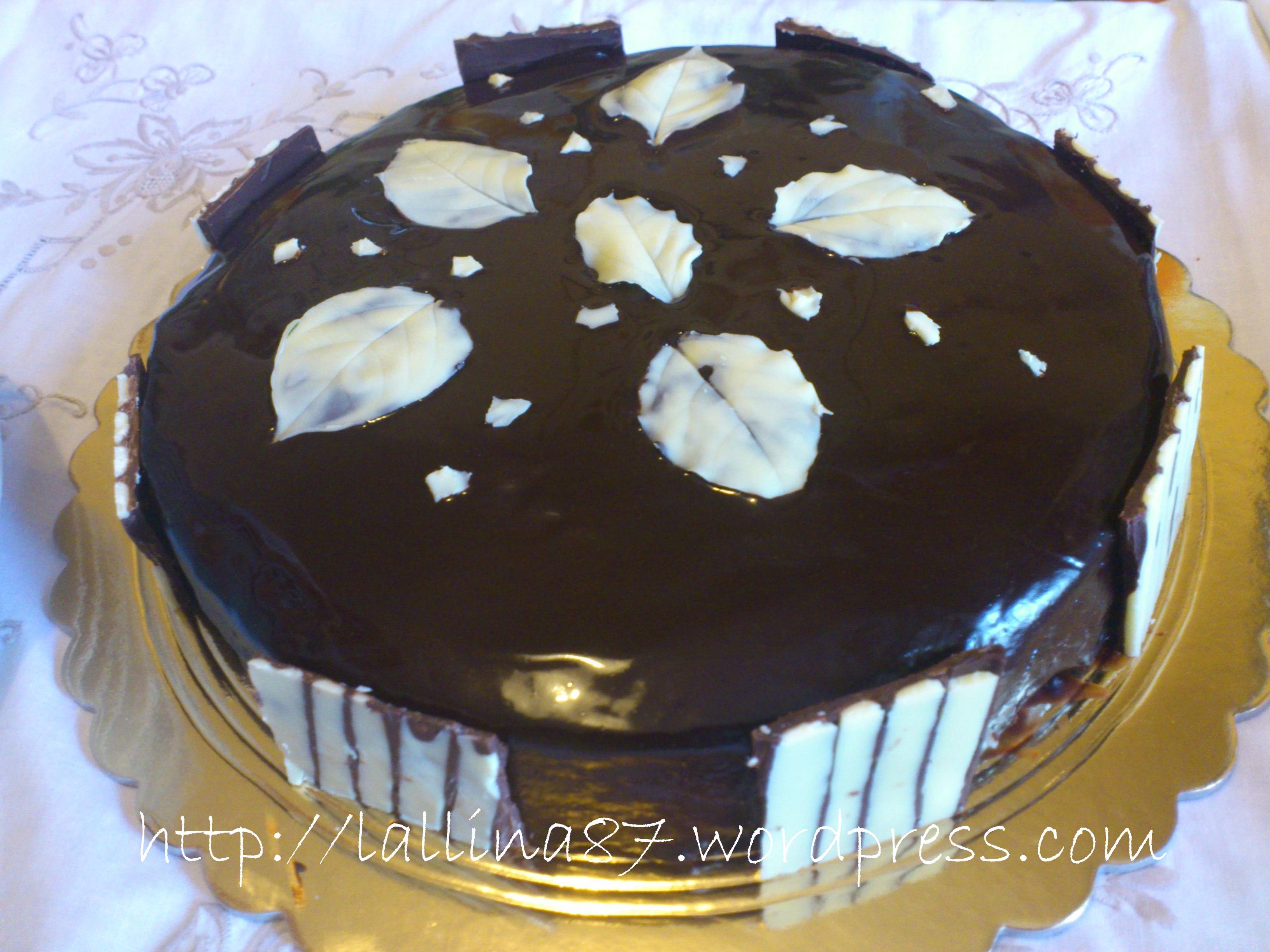 Ricoprire con la glassa a specchio portandola a 40°C e VERSARE la stessa sulla torta che va poggiata su una griglia posta a sua volta su un vassoio più grande in modo che raccolga la glassa che cola!!! NON USARE SPATOLE di nessun tipo.
