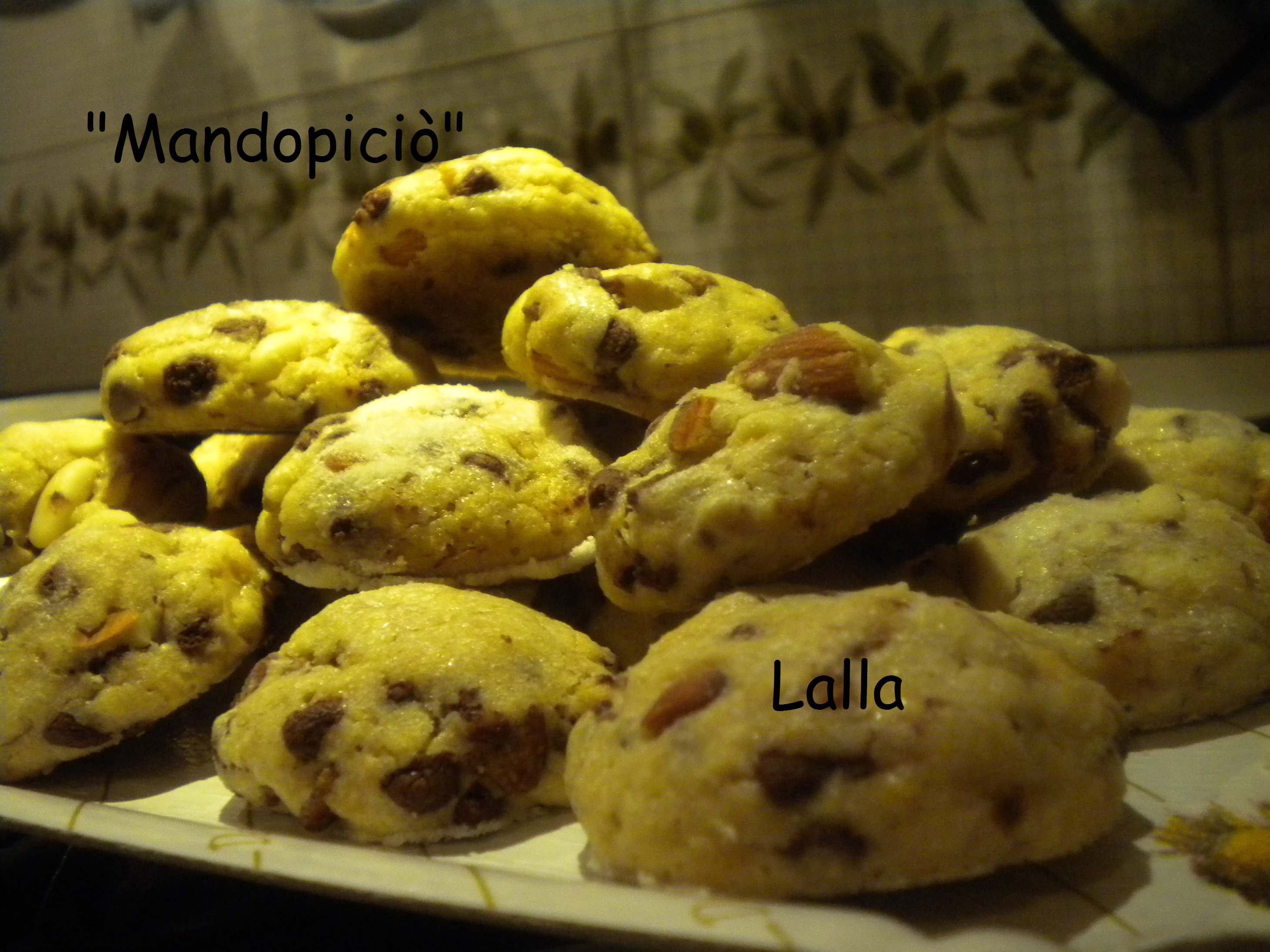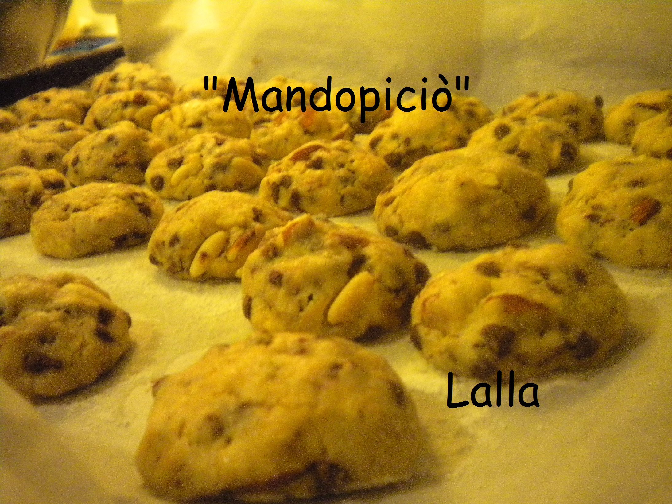 Il nome originale è “biscotti 15 minuti”, banale e poi non spiega nulla degli ingredienti, così dopo aver apportato delle modifiche, li ho ribattezzati Biscotti Mandopiciò, per gli ingredienti principali: Mandorle, Pinoli e Cioccolato