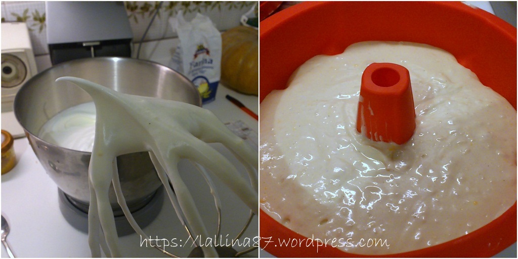 Così ho voluto provare questo dolce ma applicando qualche variante perchè l’originale prevede l’uso di farina di mandorle, infatti io ho usato tutta farina 00 e al e la cremina all’arancia che posterò a breve, quella che sto usando per aromatizzare i panettoni, insieme all’aroma 😉