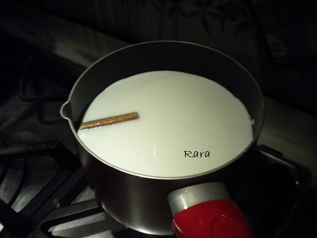 In un altro pentolino far sobbollire il latte con zucchero e cannella