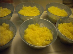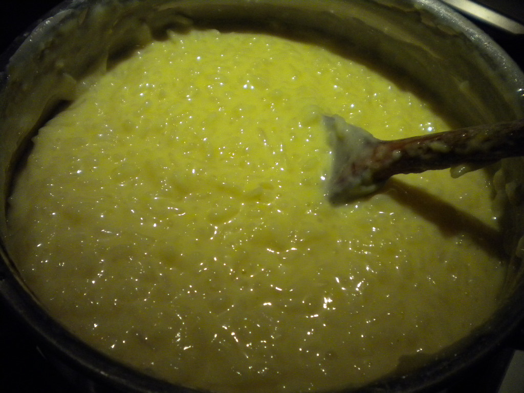 Ci sono tantissime ricette che variano principalmente in base alla presenza di uova che rendono ancor più pastoso e giallo il riso dolce, io ho seguito quella di Sara-Araujosax di Cook, il cui marito è portoghese e impazzisce per uno dei dolci nazionali 😉
