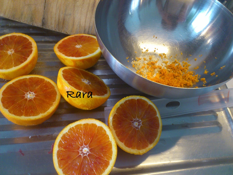 Prima di tutto preparare la bagna dei savoaiardi con il succo delle tre arance e le zeste di una di queste e 50 g di zucchero a velo, preso dal totale, la cannella, l’anice stellato, lo zenzero, mettere sul fuoco fino a completo sciogliemnto dello zucchero, far freddare.