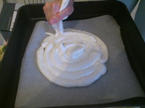 LA preparazione tra l’altro è semplice e veloce….una volta che si cuociono le basi di meringa, che hanno bisogno di 40 minuti di cottura!!