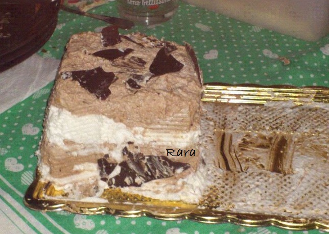 Ed è senz’altro da rifare perchè era davvero buono! Già altre volte gli anni scorsi avevo preparato la Viennetta, ma molto più semplice, con un semplice strato di cioccolato all’interno, ma mai bigusto come questa! Purtroppo la foto è stata “rubata” dal cucchiaio e dal coltello che tagliavano le porzioni 😀