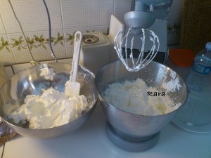 Ho montato la panna ben fredda di frigo (deve essere sempre fredda di frigo la panna per montarla, meglio mettere anche la frusta e il contenitore, acciaio, alluminio o vetro) a cui poi ho aggiunto la meringa, almeno in 3 tempi.