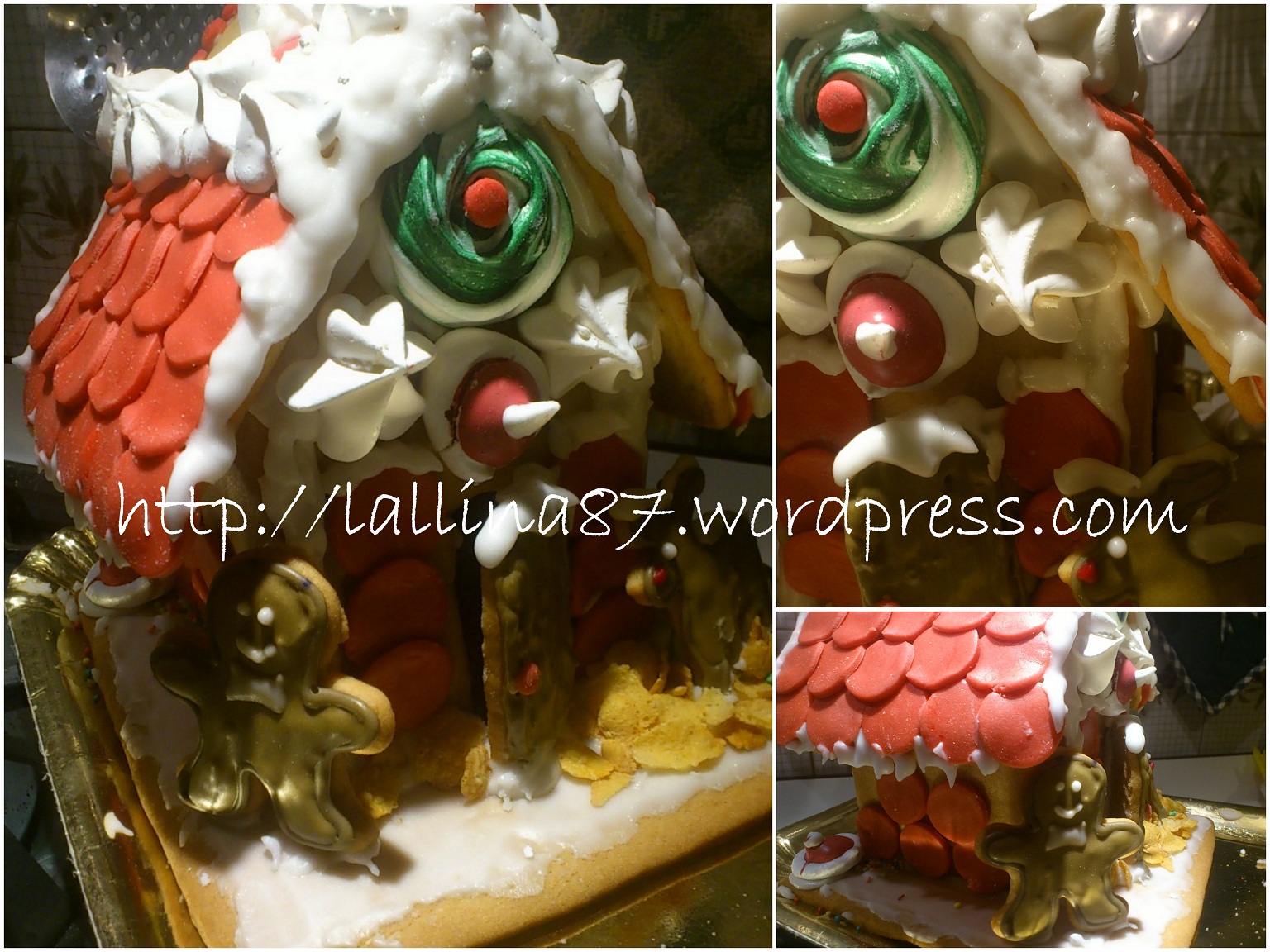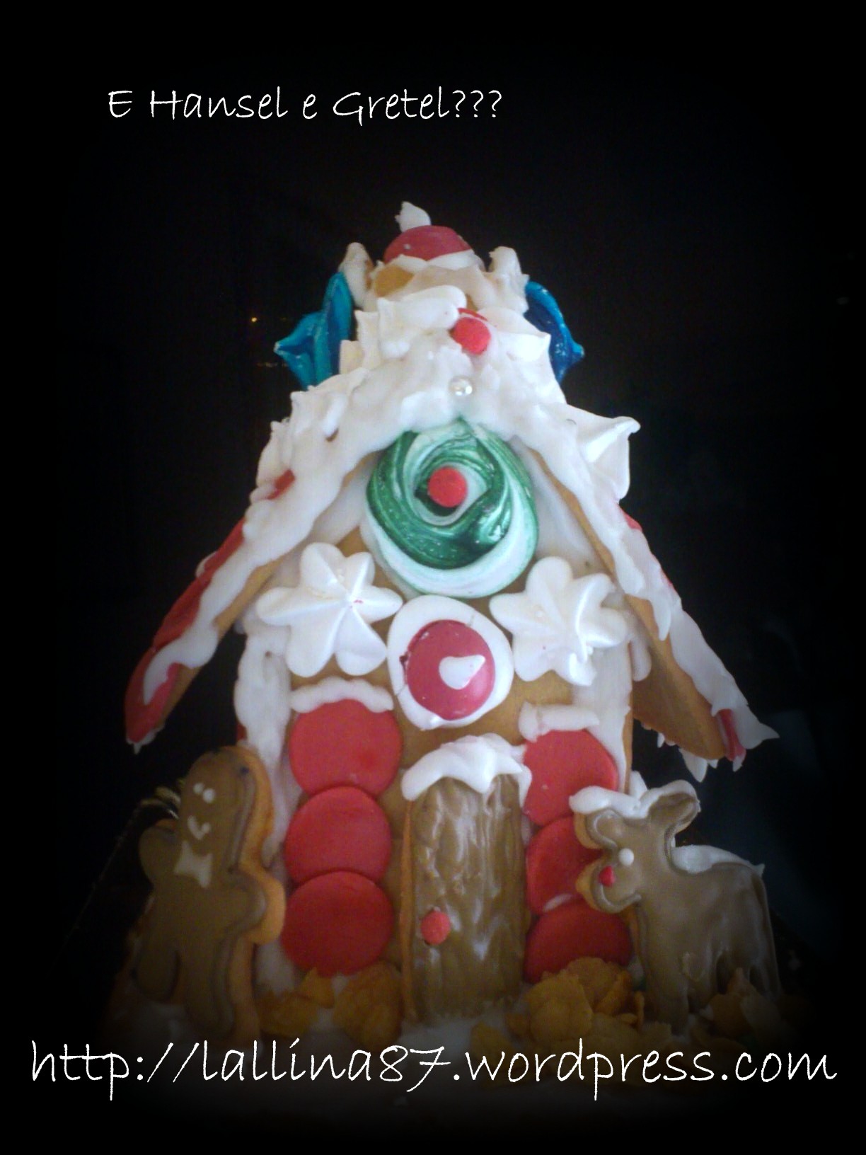 Che emozione è stata costruirla dal principio! Mettere su le fondamenta, le pareti, il comignolo e porta e finestrelle e decorarla interamente con neve e tegole! Da quanti anni mi dico di volerla costruire! Ma quest’anno il desiderio di avere una casa tutta mia/nostra pare sia ancora più vivo e così mi sono immaginata di poterci vivere, vero Raro, ci facciamo piccoli piccoli!