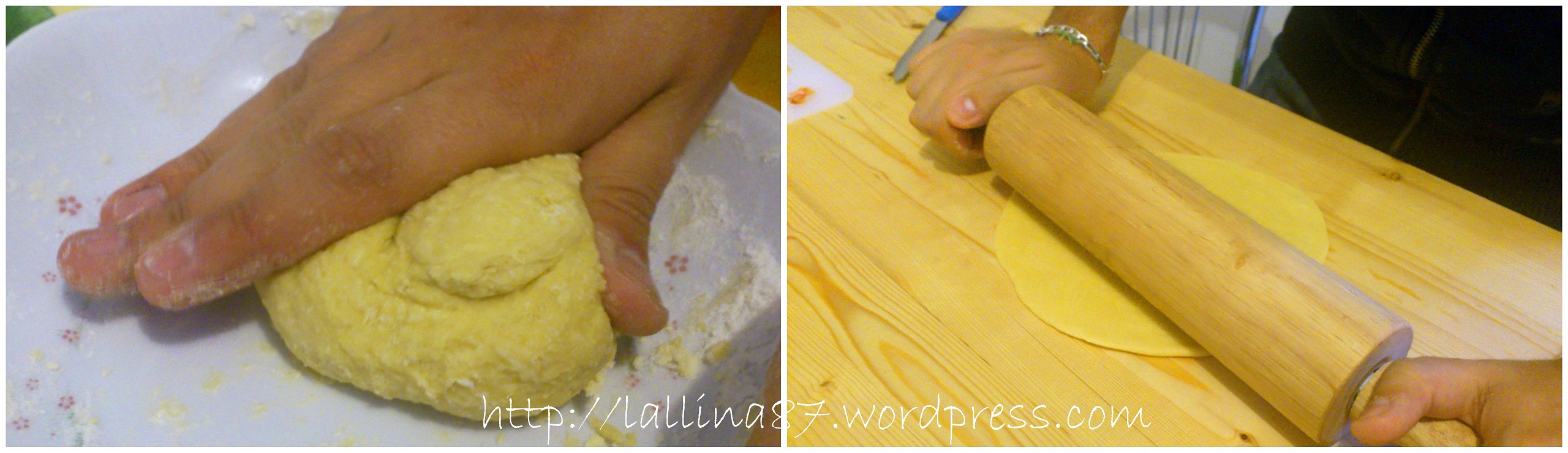 Ho setacciato la ricotta e ammorbidito la robiola con lo zucchero e le ho mescolate appena insieme (senza esagerare altrimenti per sineresi la parte grassa si divide). Poi ho aggiunto le uova prima rotte e mescolate un po’ insieme, la vaniglia e il succo di limone. Quindi prima di versare la crema sulla base tolta dal freezer ho rivestito la parte esterna della teglia con la carta di alluminio e l’ho posta su una teglia più capiente con l’acqua, per avviare una cottura a bagnomaria.