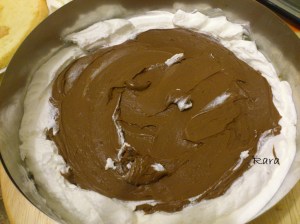 Ho lasciato la torta in frigorifero così come la vedete tutta la notte e parte della mattina dopo senza aprire il cerchio! Con questa tecnica la torta, una volta tolto il cerchio passando prima la lama del coltello appena inumidita lungo il bordo interno, risulterà già bella e ricoperta, basterà solamente allisciarla leggermente con la spatola inumidita, o con altra panna poco montata!!!