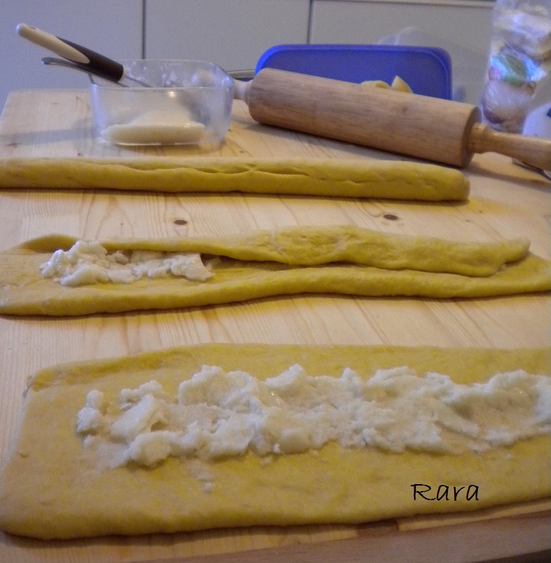 Ricetta base come la precedente di qualche giorno fa (qui), sempre di Patty, ma stavolta ho preparato il poolish con pari quantità di latte, manitoba e pm (85g) e ho farcito, come suggerisce il titolo, con mele cotogne!